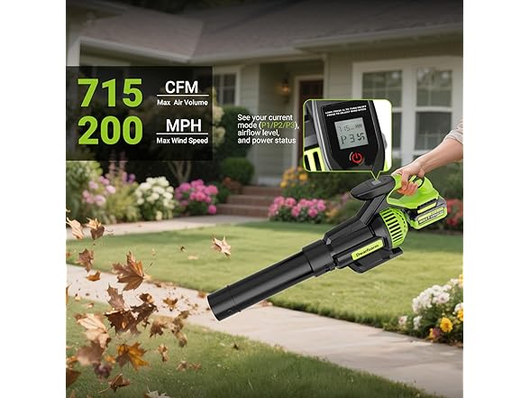 Cordless Leaf Blower with 715 CFM, 35,000 RPM Brushless Motor, Lightweight Electric Blower with LCD & 3-Speed Modes, Battery Powered with 2×4.0Ah Batteries & Charger for Lawn Care, Yard, Patio & Car
