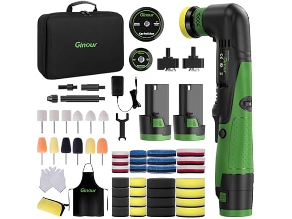 Ginour Cordless Mini Buffer Polisher for Car Detailing, 12V Mini Car Polisher Kit with 1"&1.2" Backing Plate,2X 2.0Ah Batteries and Accessories, RO/DA 6 Speeds for Polishing, Waxing, and Cleaning