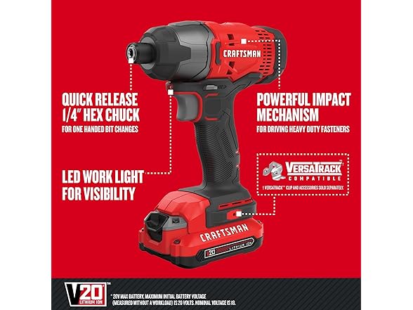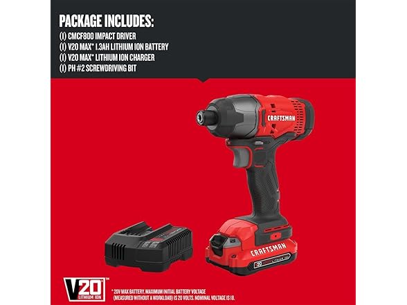 CRAFTSMAN CMCF800C1 20V MAX Impact Driver Kit, 1/4 Inch, 2,800 RPM, LED Work Light, 1.5Ah Battery and Charger Included