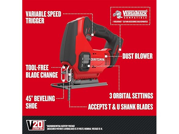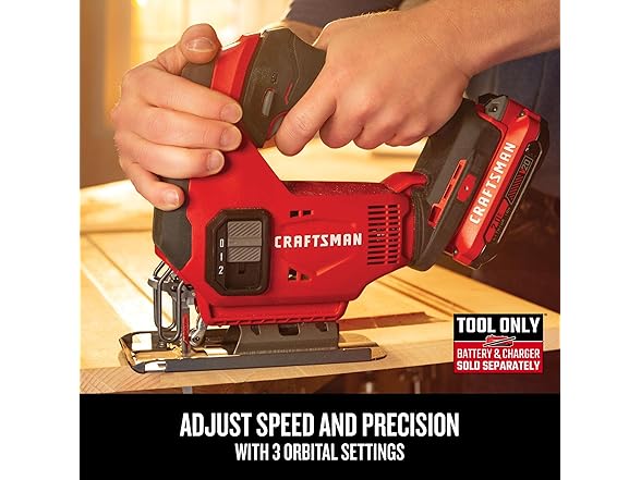 CRAFTSMAN CMCS600B V20 Cordless Jig Saw, 3 Orbital Settings, Up to 2,500 SPM, Bare Tool Only