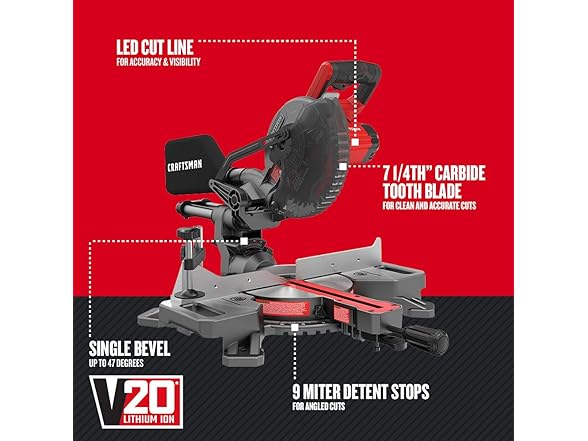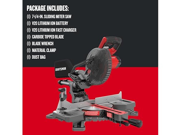 CRAFTSMAN CMCS714M1 V20 Cordless Sliding Miter Saw, 7-1/4 inch, Single Bevel, 4.0aH Battery and Charger Included