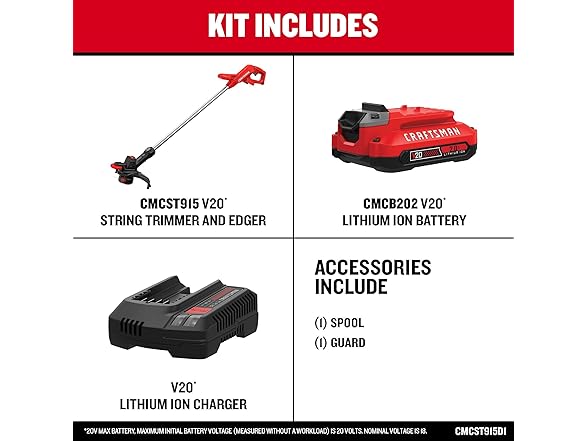 CRAFTSMAN CMCST915D1 V20 Cordless 10 in. WEEDWACKER String Trimmer/Edger Kit with 2.0 Ah Battery and Charger