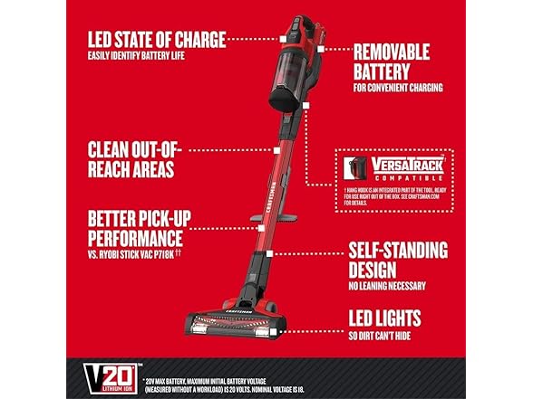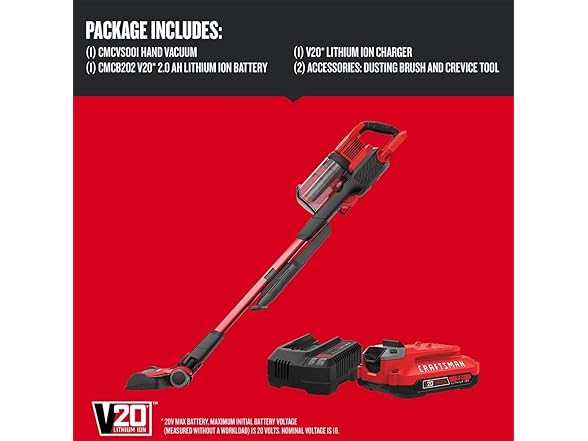 CRAFTSMAN CMCVS001D1 V20 Cordless Stick Vacuum Kit, Removable Battery Included
