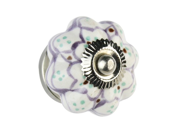Elise SE-7705 decorative ceramic knobs scalloped white with lavender package of 5