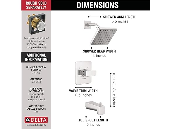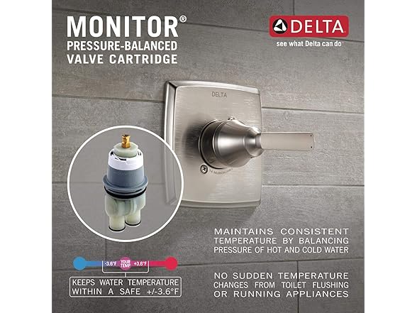 Delta Faucet Modern Single-Handle Chrome Tub and Shower Trim Kit, Shower Faucet with Single-Spray Touch-Clean Shower Head, Chrome T14467-PP (Valve Not Included)