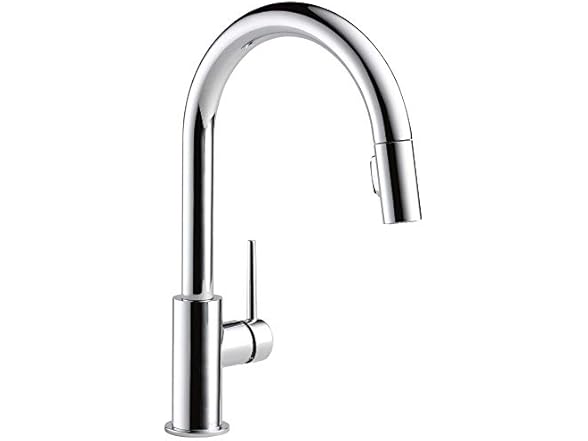 In the Box: (1) DELTA Trinsic Chrome Kitchen Faucet with Pull Down Sprayer, Modern Single Hole Kitchen Sink Faucet, Single Handle, Chrome 9159-DST