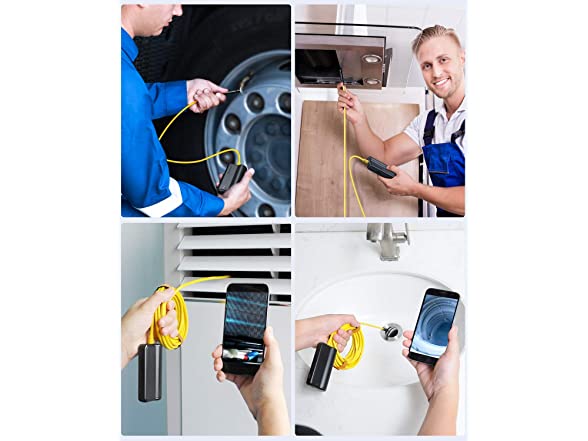 - [Flexible Semi-Rigid Snake Cable]: For a better inspecting experience, the wireless dual hd inspection camera is adopted with 16.5ft semi-rigid cable. The waterproof endoscope camera cable can be bent to the desired angle for observation. 7.9mm / 0.31In camera lens which can be reach deep inside the inspection areas. Both near and distant trouble spots can be easy captured.