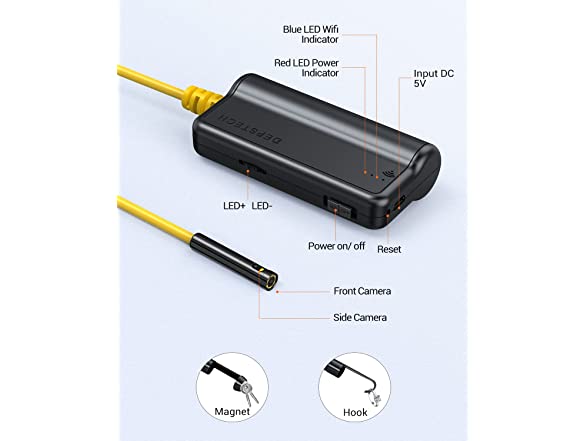 - [Helpful Attachments]: 2 useful accessories can be attached on the waterproof borescope camera probe for different use-magnet and hook for fetching things. Both iOS and Android are compatible with the hd inspection camera and work fine. NOT support PC ! Please don’t hesitate to contact us if you have any question about DEPSTECH endoscope or the instruction.