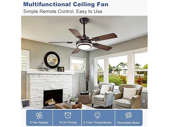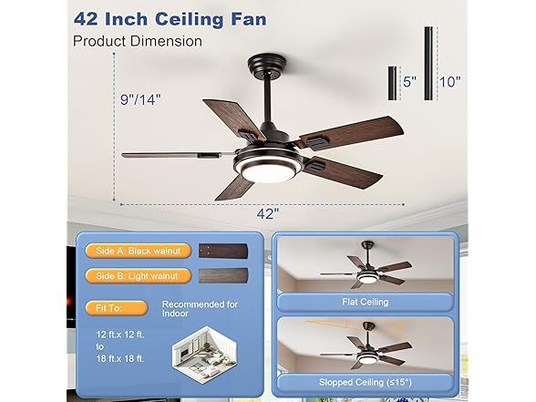 Depuley 42-Inch Ceiling Fan with Light: Walnut Ceiling Fans with 5 Blades Dual Finish Reversible - Farmhouse Ceiling Fan with Remote Control