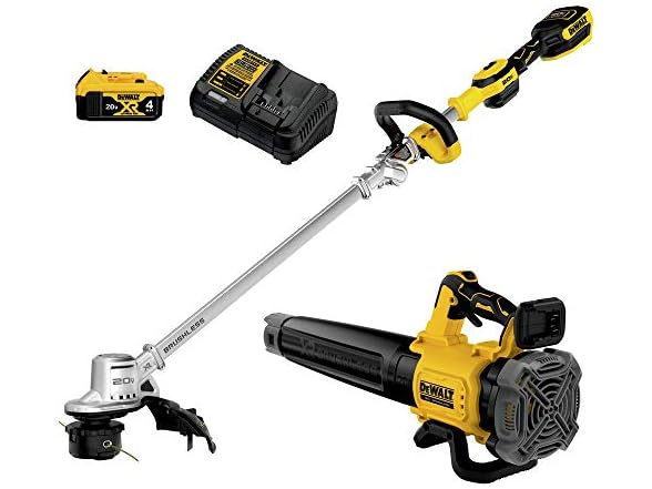 - Includes: (1) DCBL722 Handheld Axial Blower (1) Concentration Nozzle (1) DCB204 Battery (1) DCB115 Charger (1) DCST922 Folding String Trimmer