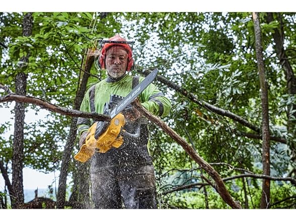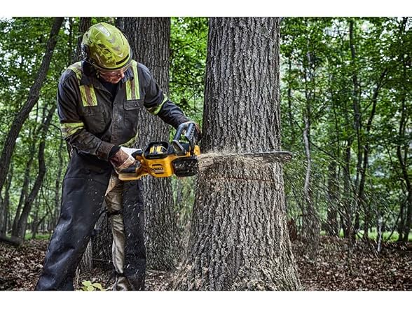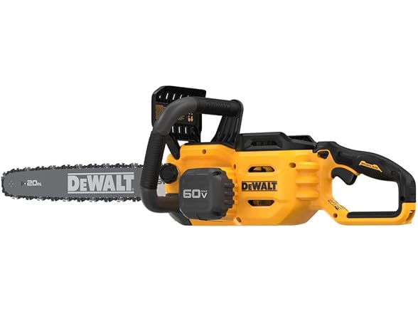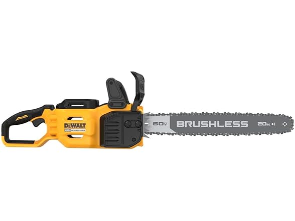 Cut, chop, and sculpt with ease using the durable 60V MAX* Brushless Cordless 20 in. Chainsaw. With a peak horsepower of 4 HP using a DCB615 battery (sold separately), this rugged Chainsaw packs the sawing power and dependability needed for routine sunup to sundown workdays. Tighten the chain as needed for steady bar retention while the brushless motor delivers high-efficiency performance with auto-oiling for continuous lubrication. Kick back protection is provided by the chain brake bult-in with the low kick back bar and chain.