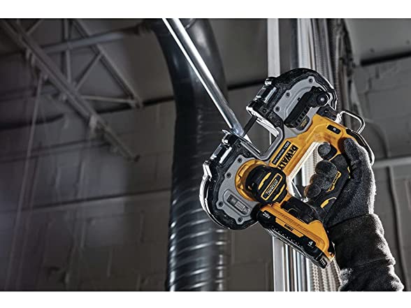 This Compact Bandsaw is lightweight at 6.6 lbs. with an integrated guard, making it ideal for overhead and one-handed cutting applications.