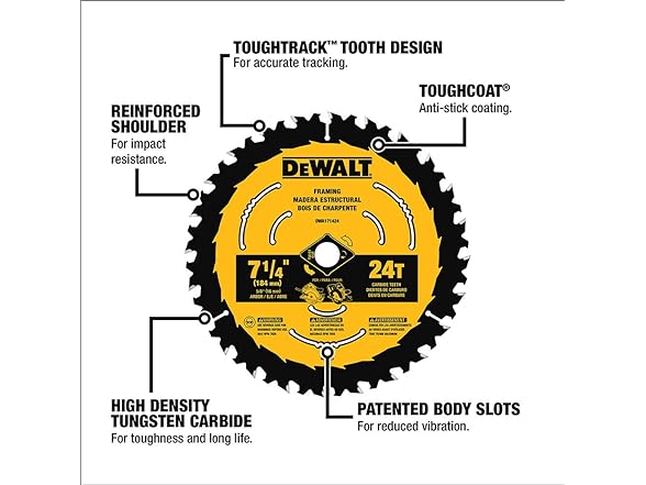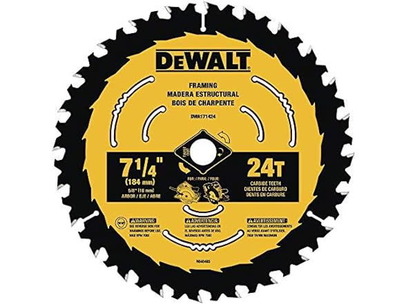 DEWALT Circular Saw Blade, 7 1/4 Inch, 24 Tooth, Wood Cutting (DWA171424)