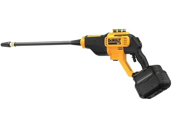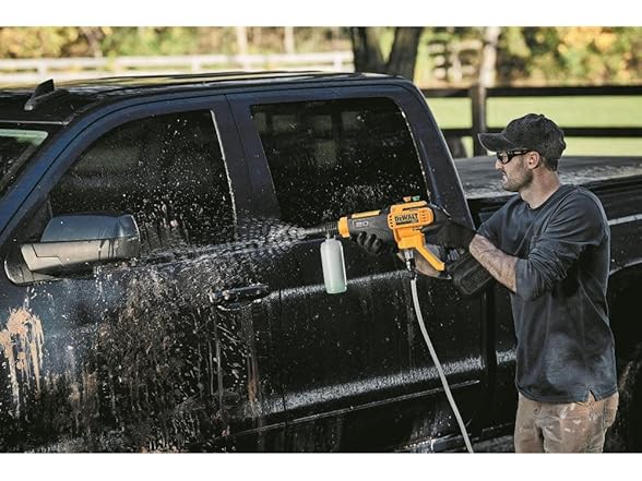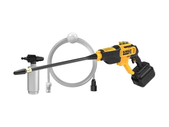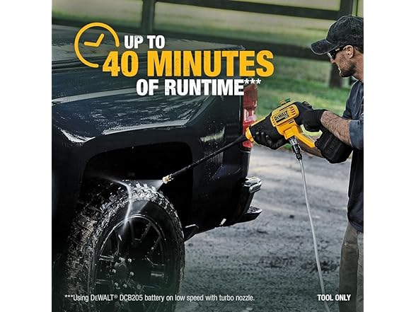 For portable cleaning on the jobsite or at home with 10X the cleaning power of a garden hose, the DEWALT 20V MAX Power Cleaner is the ideal choice. This versatile tool can draw from any fresh water source with an included suction hose for when a garden hose is not easily accessible. The power cleaner can also be hooked up to your garden hose at home or on the jobsite with the convenient quick connect adaptor. Conveniently clean your tools and equipment as well as decks, boats, outdoor furniture, and vehicles with this all-in-one device. Find the right stream for the job with 4 nozzles included that can all be stored on the unit, plus a soap bottle to efficiently tackle a variety of cleaning tasks. Part of the 20V MAX DEWALT system, this tool is a great addition to the professionals collection.
