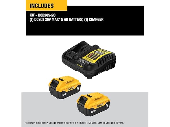 DEWALT DCB205-2c 20V MAX Lithium-Ion Battery 2-Pack and Charger, 5.0 Ah, Battery Starter Kit