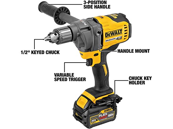 The DEWALT® 60V max* mixer/drill with e-clutch® system has over 2x the power of our corded mixer allowing it to easily mix thinnest, tile mortar, and fiber reinforced concrete.