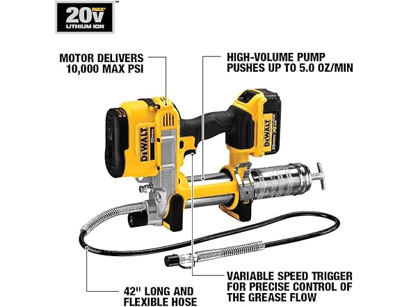 DEWALT DCGG571B Grease Gun 20V MAX, Cordless Electric Grease Gun 42” Hose, 10,000 PSI, Variable Speed Triggers, Tool Only