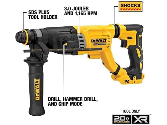 DEWALT DCH263B 20V MAX Rotary Hammer, SDS Plus, 1-1/8-Inch, Tool Only