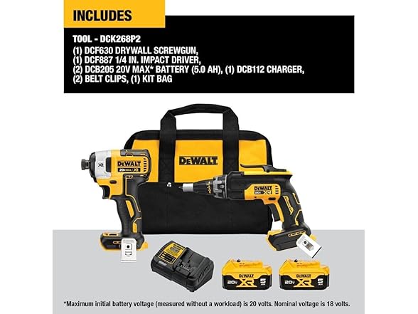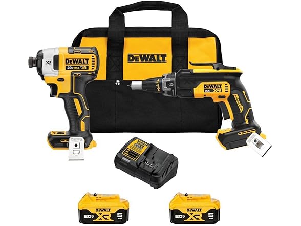 DEWALT DCK268P2 20V MAX XR Drywall Screw Gun and Impact Driver, Power Tool Combo Kit, 2 Batteries and Charger Included