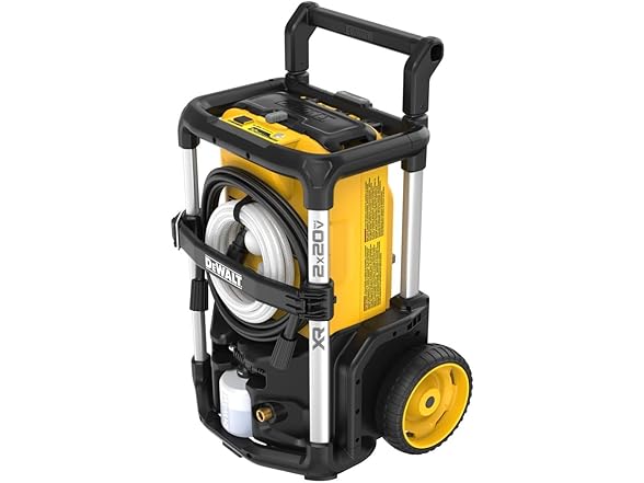 Charge through dirty jobs with the 2X20V MAX Cordless 1600 MAX PSI Pressure Washer Kit. Featuring a powerful brushless motor and on-the-go functionality, this self-priming pressure washer can draw from a fresh water source with its suction hose.Tackle tough clean-up with 1,600 MAX PSI, 1.2 GPM and an integrated foam cannon that makes quick work of stubborn stains. Power this product with the 2 included dual-voltage FLEXVOLT batteries that help maximize runtime in 20V MAX tools and performance in 60V MAX tools.