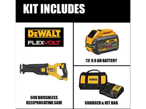 DEWALT DCS389X1 FLEXVOLT 60V MAX Cordless Brushless Reciprocating Saw with (1) FLEXVOLT 9.0Ah Battery
