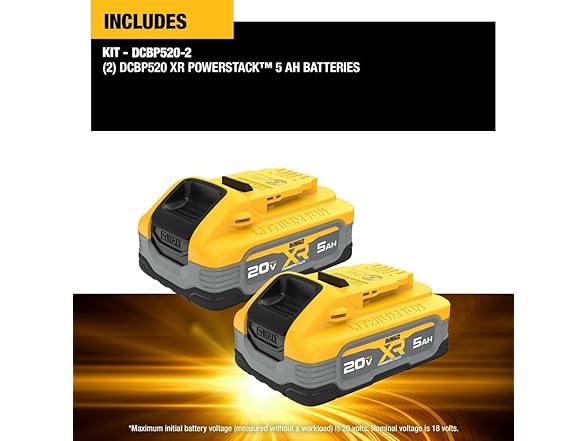 DEWALT DCBP5202 20V MAX XR POWERSTACK 5 Ah Lithium Ion Battery, 2-Pack