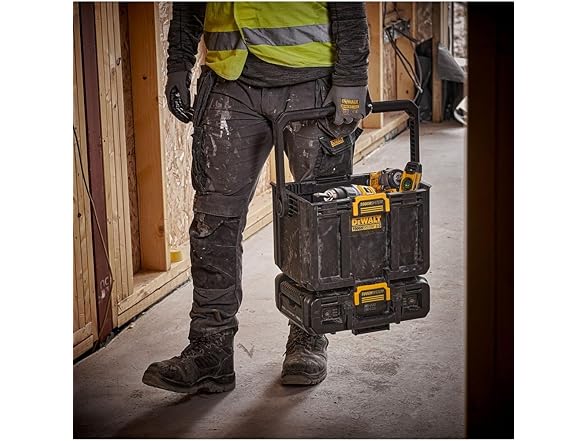 - DWST08060: convenient portability for tools- carry your tools throughout the job with a durable folding-handle integrated onto the open storage tote