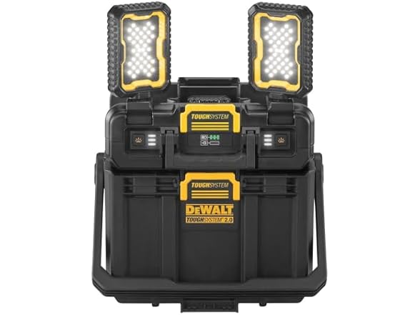 Illuminate work areas and keep essential tools close-at-hand with the DEWALT TOUGHSYSTEM 2.0 Adjustable Work Light with Storage. Powered by 20V MAX* batteries (sold separately), this modular lighting solution features 2-pivoting LED heads that provide up to 3-hours of runtime. With ample storage space, an integrated folding handle, and durable design this TOUGHSYSTEM compatible product delivers the versatility needed for demanding jobsites.