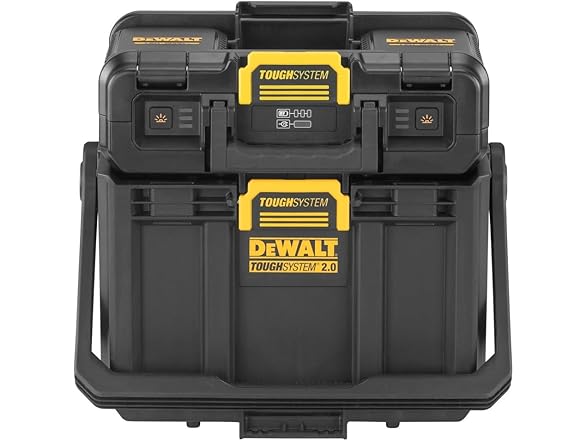 - DWST08060: 2-in-1 functionality - illuminate work areas and transport essential tools with an adjustable work light featuring 2-pivoting LED heads and a compact storage box