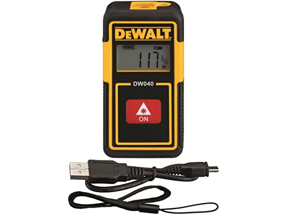 FEATURES-40ft range, 1/4inch accuracy, 1.3 mW; Laser Class- 2; Li-ion rechargeable battery; LCD display screen; Wrist strap included; SPECIFICATIONS-The Dewalt 40Ft Pocket Laser Distance Measurer is small and easy to use with one-button operation. This laser distance measurer can be used for a wide range of applications from electrical and plumbing to basic home measurements. It has a rechargeable Lithium-ion battery and comes with a wrist strap for added convenience.