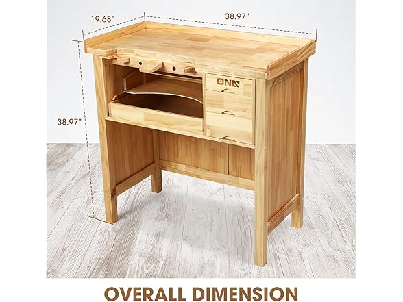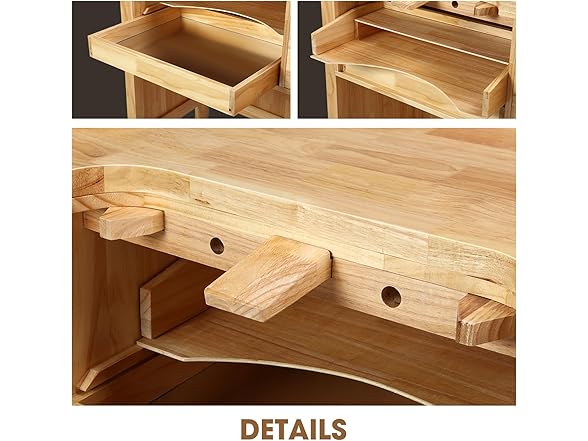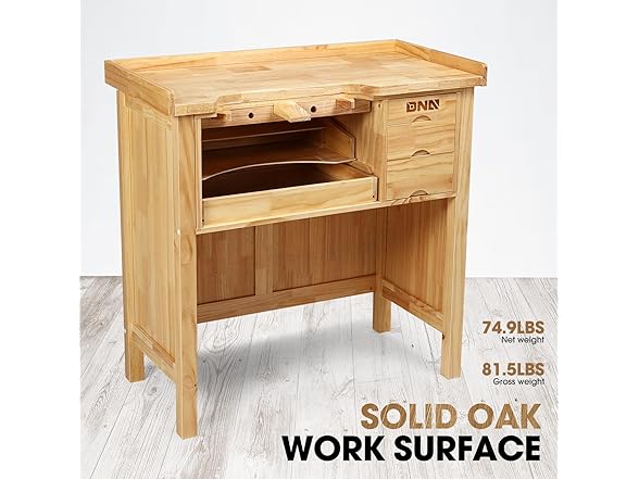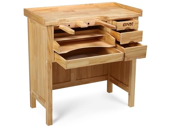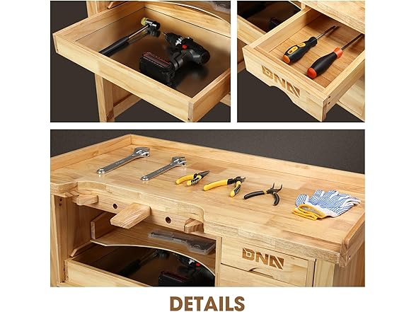 DNA MOTORING Heavy Duty Wood Workbench, Wooden Workbench with 5 Drawers for Workshop, Garage, W/Adjustable Handle, TOOLS-00524