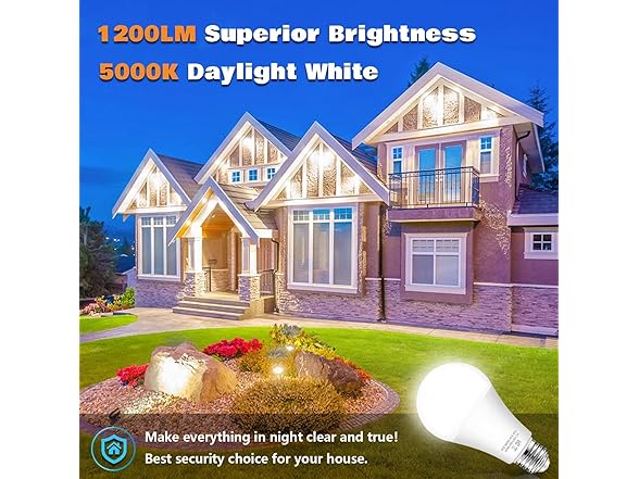 - 【Superior Brightness】The outdoor LED dusk to dawn light bulbs offer 1200lm super bright lighting with CRI (Color Rendering Index) 90+, revealing fantastic color of various objects like an ideal or natural light source, its 5000k daylight nature glow makes every dark corner in your home looked just like during the day.