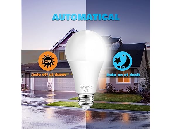 - 【Advanced Photocell Sensor】Our A19 dusk to dawn led outdoor lighting bulb uses built-in photocell technology, detect brightness sensitively even inside FROSTED light fixture. With inside sensor, all directions are workable, easy to install. In addition, we uniquely support 100-130V power input, more stable, compatible to all of power supply in the market. Note: please don’t use 2 light sensor bulb within 1.2m or one fixture, to avoid light impact from each other.