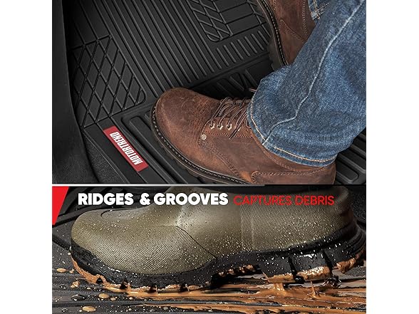- NO-SLIP GRIP: The bottom of the car mat & cargo mats for SUV and cars are equipped with rubberized nibs to ensure they stay securely in place, while the ergonomic grooves on top provide enhanced traction and comfort for your feet, making every drive safer and more enjoyable.