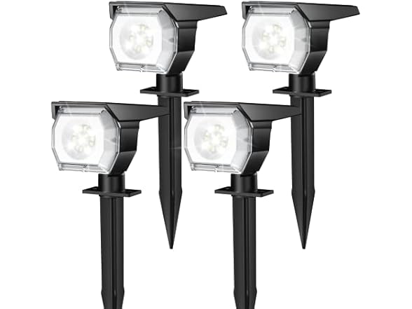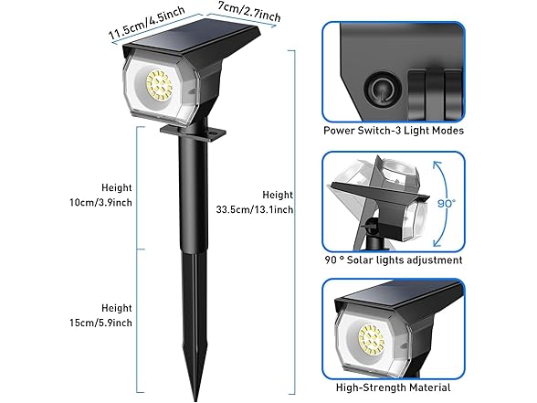 - SIMPLICITY & FLEXIBILITY: The solar spot lights outdoor is easy to install. All necessary installation parts are provided, allowing you to easily insert it into the ground as a solar spot lights or fix it on the wall as a wall light. Its 2-in-1 function lets you choose as you prefer.It is ideal for illuminating your garden, wall, christmas, yard and other outdoor areas