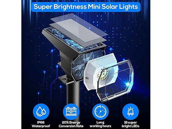 - UPGRADED SOLAR LIGHTS: The solar lights outdoor waterproof are equipped with 18 high-brightness LED lamp beads, which can produce excellent lighting effects wherever they are placed without incurring a huge electricity bill.Solar lights can work for 6-18 hours in full direct sunlight.Compared to other solar lights, our lights lasts longer and is brighter