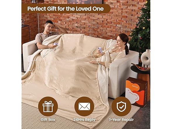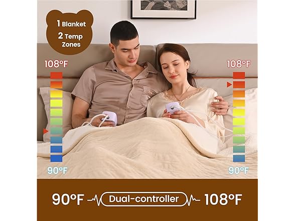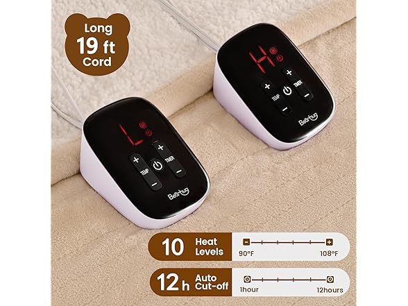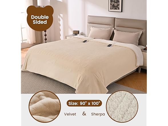 Bearhug Electric Blanket King Size 100" x 90", Dual Controller Heated Blanket Beige, Velvet & Sherpa, 10-Heat Levels & 1-12H Auto Off, 5 Year Warranty, Over-Heat Protect, ETL, Machine Washable