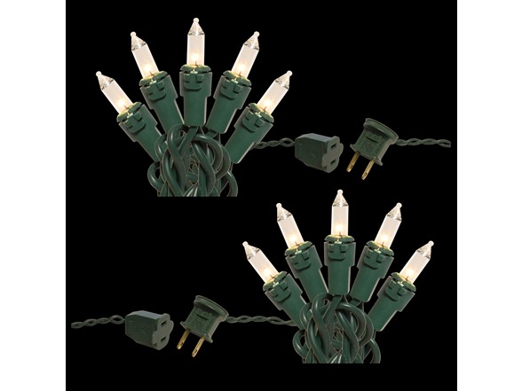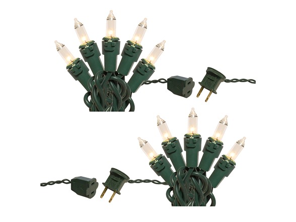 Electric string lights create a festive atmosphere to your indoor or outdoor holiday décor. This set of two light strands feature 100 slender lights per cord. They add a soft glow of illumination to trees, shrubs, roof tops, entryways, mantels, and more.
