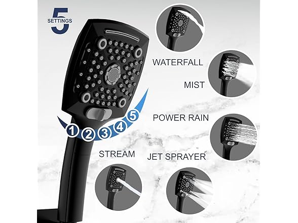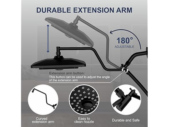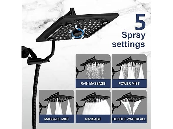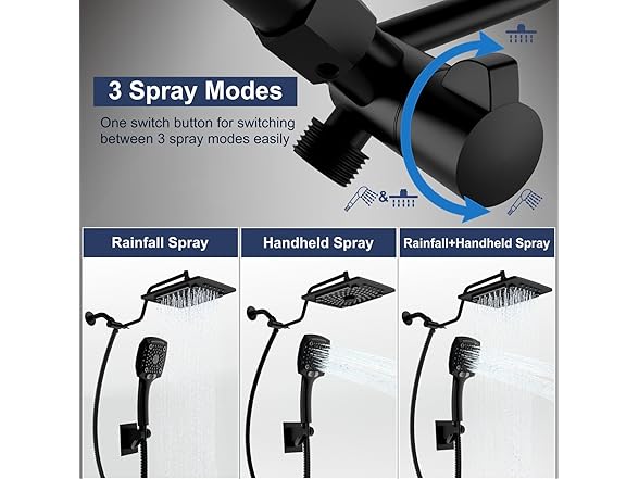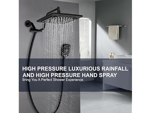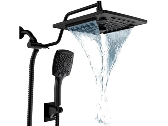 ELLO&ALLO Rain Shower Head with Handheld Spray, Rainfall Shower Head Combo with 60" Hose, Dual Showerhead Set with Adjustable Shower Extension Arm, Matte Black