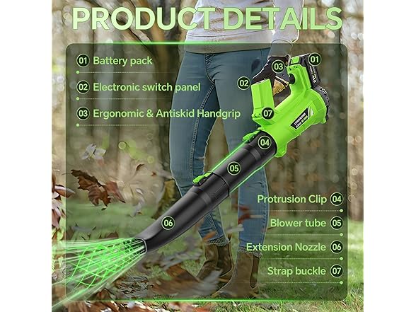 ELRINA Cordless Leaf Blower, Your Choice of Color