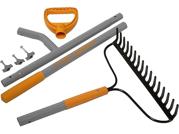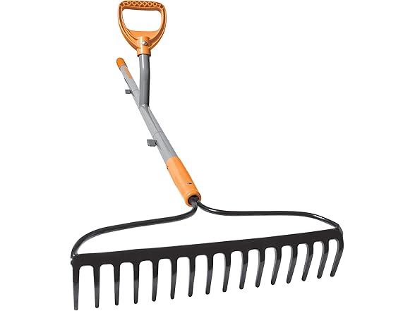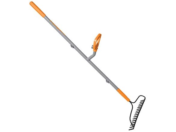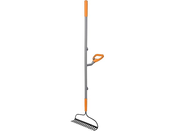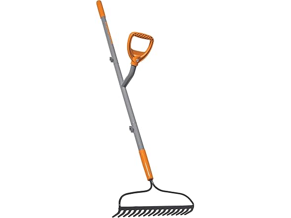 ErgieShovel ERG-BWRK16 Strain Reducing Steel Impact Resistant Bow Rake, 16-Tine, 54-Inch Shaft, w/Patented Ergonomic Second Handle, Gray/Orange