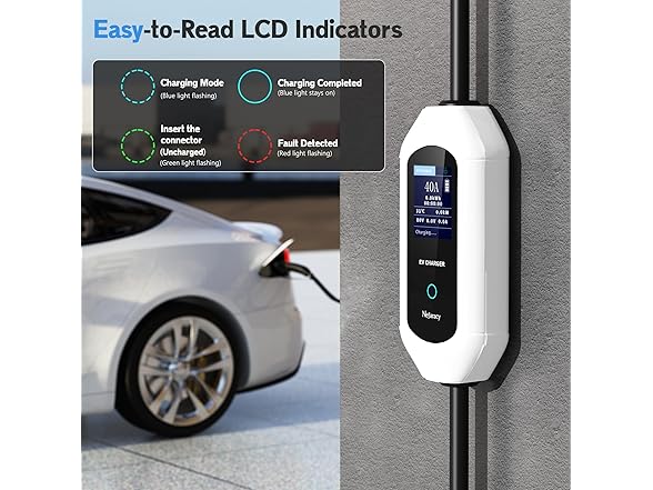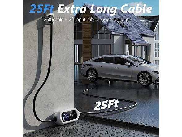 EV Charger Level 2, 40A Amp Portable EV Charger for All SAE J1772 EVs Without Adapter, 25FT+2FT Cable, 9.6KW EV Car Charging Station with App Control, Electric Vehicle Chargers(240V, NEMA14-50 Plug)