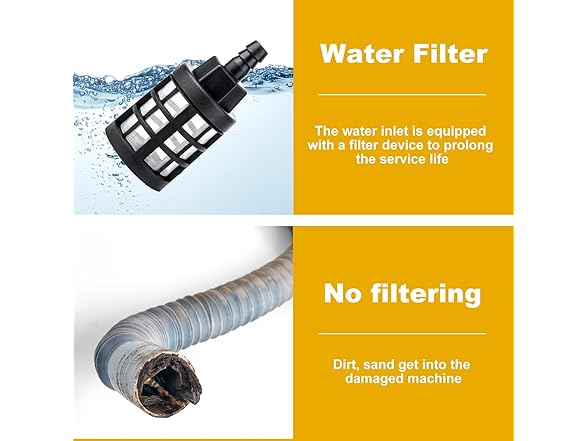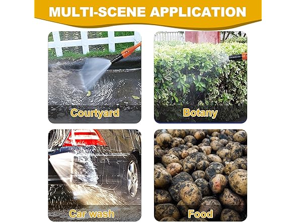 - Flexible Nozzles for All Tasks: The 0-180° rotating nozzle adapts easily to different situations, whether it's cleaning patios or watering flowers, providing multifunctional utility.The filter self-priming feature draws water from any source, making it an ideal companion for outdoor cleaning tasks like bikes and motorcycles.