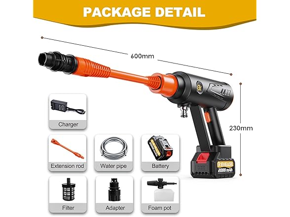 - User-Friendly Convenience: Equipped with an LCD display for monitoring battery power, this lightweight cordless washer. quick assembly and can be used anywhere without cumbersome cords.
