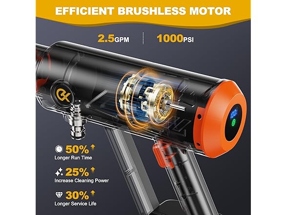 - Advanced Brushless Motor Performance: Incorporating a robust brushless motor, the EVEAGE cordless pressure washer boasts 50% longer run time, 25% increased power, and 10% times longer use compared to traditional brush motor washers.
