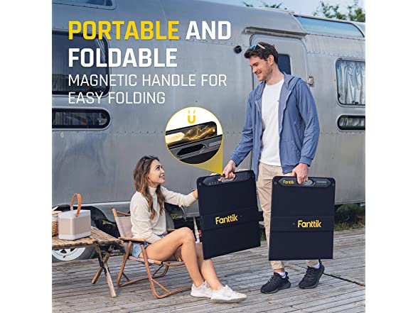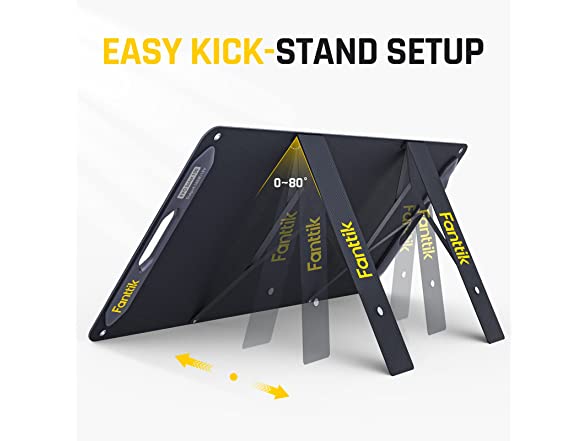 - PORTABLE AND EASY TO SET UP: Equipped with 2 adjustable kickstands, the Fanttik solar panel can be placed steadily on any surface and can adjust the panel for better sun exposure. Thanks to the foldable magnetic design, you can start absorbing energy from the sun for your power station with just a few seconds of setup