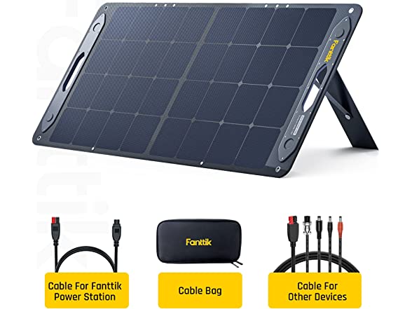 - WHAT YOU GET: Fanttik EVO 100 Solar Panel*1; Cable Storage Pouch*1; Anderson Power Cord*1; 1 to 4 Connector*1; User Manual*1