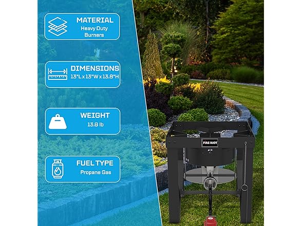 - PERFECT FOR OUTDOOR COOKING: The FireRiot Outdoor Propane Burner is designed to enhance your outdoor cooking adventures. Featuring a single propane burner, it allows you to cook with ease and enjoy your time outdoors to the fullest! It's easy to set up, making it perfect for backyard gatherings, camping trips, tailgate parties, fishing, or hunting adventures.