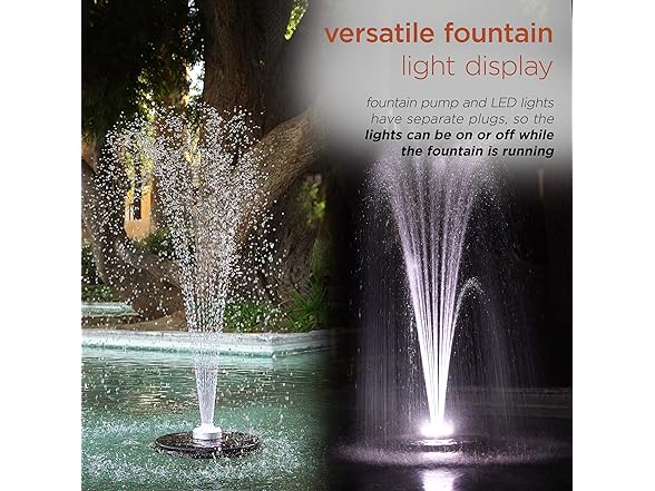 - SEPARATE POWER CONTROL: The fountain’s pump and LED light ring operate with separate plugs, giving you the flexibility to run the water spray on its own or combine it with the brilliant light display for a dynamic effect.