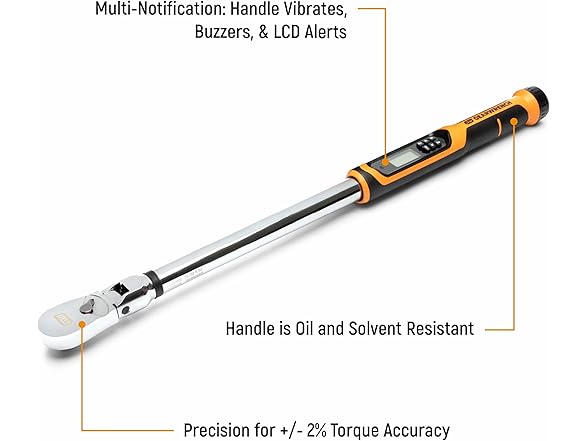 GEARWRENCH 85079 1/2 Flex Head Electronic Torque Wrench with Angle 25-250 ft/lbs